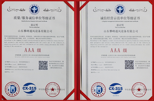 • AAA級企業等級證書